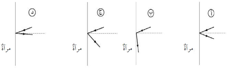 ما الرسم الذي يوضّحُ أفضل اتجاه للضوء المنعكس؟