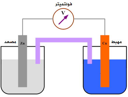 كما يتجه مؤشر الفولتميتر نحو قطب المهبط.