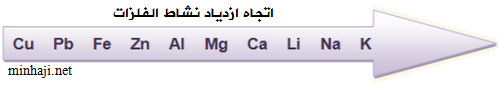يزداد فرق الجهد الذي يسجله الفولتميتر بزيادة المسافة بين الفلزين في سلسلة النشاط.