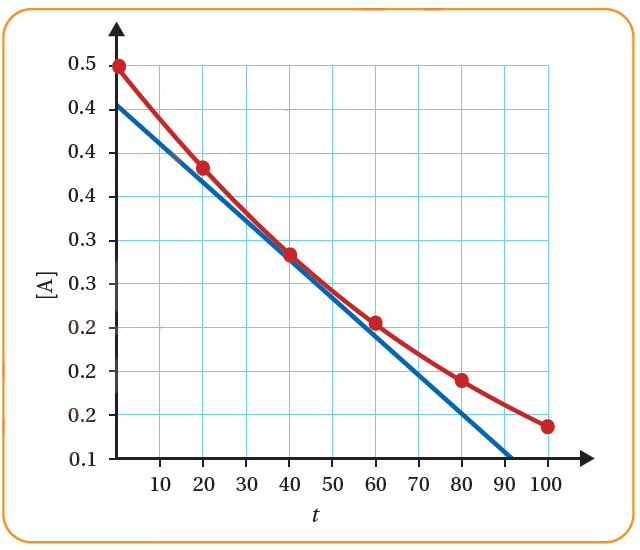 أوضّح كيفية حساب سرعة التفاعل المتوسطة والسرعة الابتدائية من الرسم البياني.