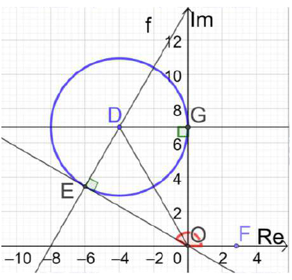 وهذه معادلة دائرة في المستوى المركب مركزها (-4, 4)، وطول نصف قطرها 4