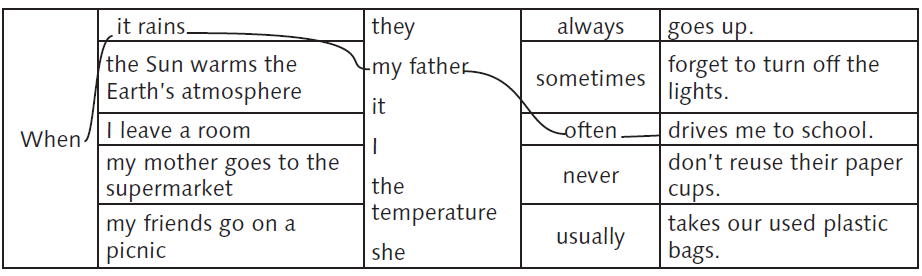 Sami and his family use only energy-saving bulbs. They also turn off the lights when they leave the room. They like to go on picnics, but they never use paper cups. They always take real plates and glasses. They also take real knives and forks.