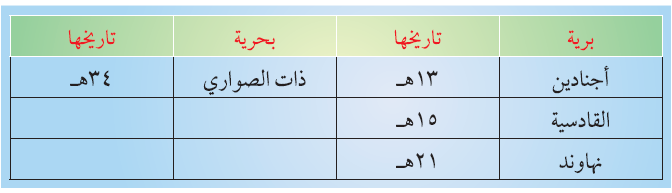 أصنّف المعارك التالية مرتبة زمنياً من الأقدم للأحدث في الجدول: