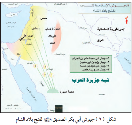 أ- من أين انطلقت الجيوش الأربعة المتجهة إلى بلاد الشام؟