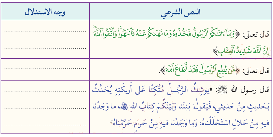أَتَأَمَّلُ النصوص الشرعية الآتية الدالة على مكانة السُّنَّة النبوية الشريفة، ثمَّ أُبَيَّنُ وجه الاستدلال بها: