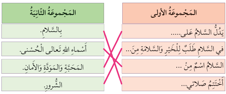 أصل بخط بين العبارة في المجموعة الأولى وما يناسبها في المجموعة الثانية في ما يأتي:
