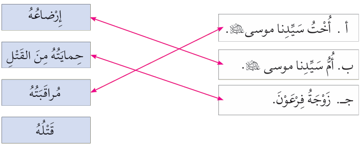 أصل بين كل شخصية والدور الذي قامت به تجاه سيدنا موسى عليه السلام: