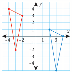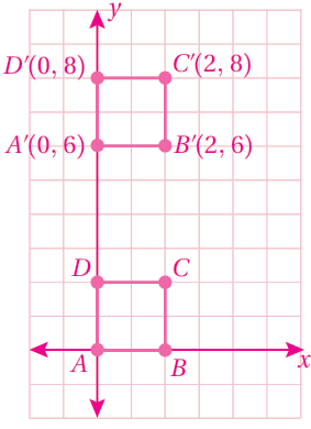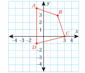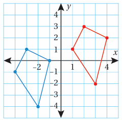 (8) أنسخ الشكل على ورقة مربعات، ثم أجد إحداثيات رؤوسه تحت تأثير انسحاب مقداره وحدتان إلى اليسار، و 4 وحدات إلى الأسفل.
