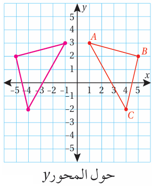 أكتب إحداثيات صور رؤوس كل شكل مما يأتي بالانعكاس حول المحور y، ثم أمثل الشكل وصورته: