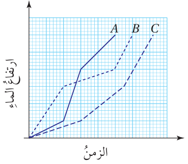 أصل المنحنيات A و B و C بالوعاء المناسب لكل منها، وأبرر إجابتي.