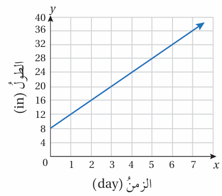 أشجار: يبين التمثيل البياني أدناه العلاقة بين طول نبتة موز بالإنش والزمن بالأيام منذ زراعتها.