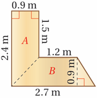 0.5 (0.9) (1.5 + 2.4) + 0.5 (0.9) (1.2 + 2.7) = 3.1 m2