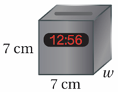 (8) ساعة رقمية ذكية: أجد عرض الساعة w المبينة في الشكل المجاور، علمًا أن حجمها 22.5 cm3