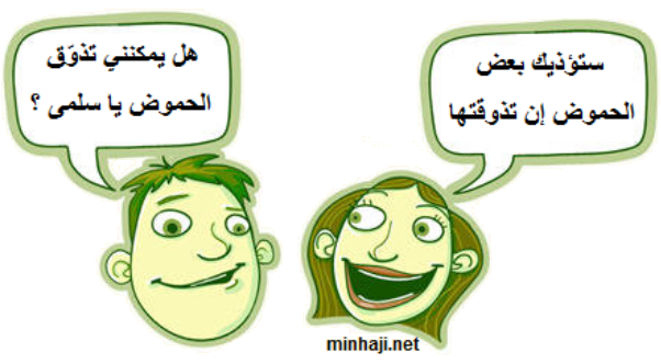 1- للحموض الموجودة في المواد الغذائية طعم حمضي (لاذع).