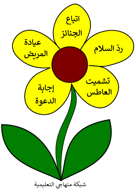 "حق المسلم على المسلم خمس: رد السلام، وعيادة المريض، واتباع الجنائز، وإجابة الدعوة، وتشميت العاطس".