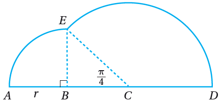 تحدّ: في الشكل المجاور، ACD زاوية مستقيمة، و ABE قطاع دائري مركزه B ، ونصف قطره r ، و CED قطاع دائري مركزه C ، و قائمة و :