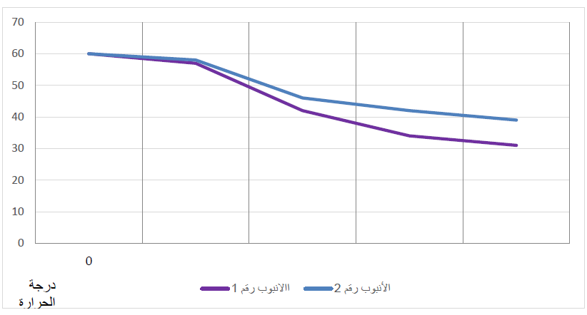 1- أقارن بين الأنبوبين من حيث التغير في درجة الحرارة.