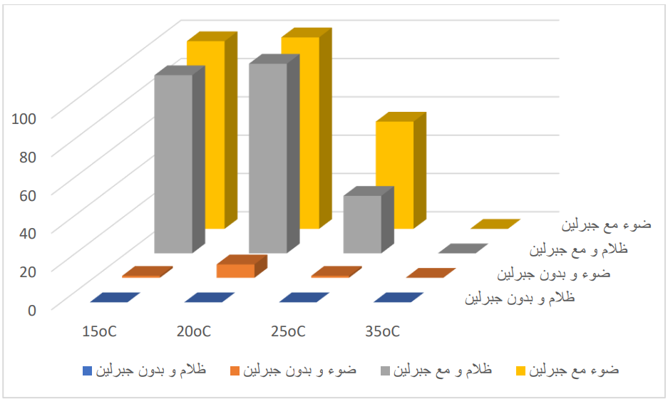 المتغيرات المرتبطة: تركيز الجبرلين ودرجة الحرارة.
