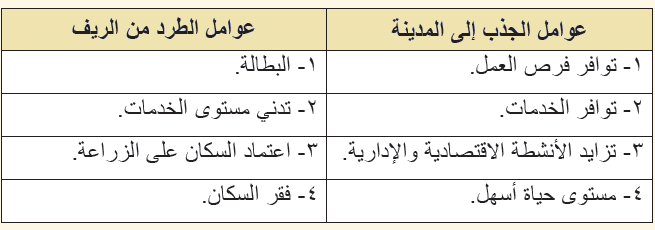 مقارنة بين عوامل الجذب في المدينة وعوامل الطرد من الريف: