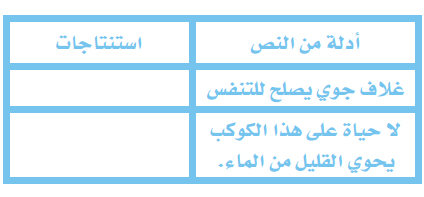 أستنتج. أفترض أن كوكباً جديداً اكتشف، له غلافٌ جويٌ، يصلح للتنفس، ولا توجد حياةٌ على سطحه، وتوجد كميّاتٌ قليلةٌ جداً من الماء، فهل يصلح هذا الكوكبُ ليعيش عليه الإنسان؟ أوضّح ذلك.