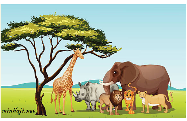 يعيش فيها الفيلة والزرافات والحُمر الوحشية التي تعد فرائس للنمور والأسود.