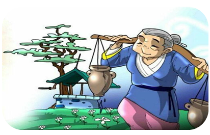 يُحكى أن امرأة كانت تنقل الماءَ إلى بيتها في جرّتين؛ فتضعُ على كتفيها عصاً غليظةً وتُعلقُ كلّ جزءٍ على طرف، وكانت إحدى الجرّتين مثقوبة، فما أن تصل المرأة إلى بيتها حتى يفرغُ نصفُ الماء الذي فيها، وظلت الحالُ هذهِ شهوراً عديدة.