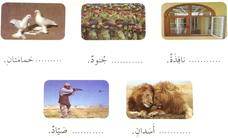 - امْلَأِ الْفَراغَ أَسْفَلَ كُلِّ صورَةٍ بِالْكَلِمَةِ الْمُناسِبَةِ مِمّا بَيْنَ الْقَوْسَيْنِ: