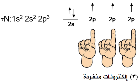 تحتوي كل ذرة نيتروجين على (3) إلكترونات منفردة.