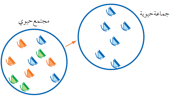العلاقات بين الكائنات الحية: (الافتراس، التنافس بين الجماعات المختلفة، الصيد من قبل الإنسان).