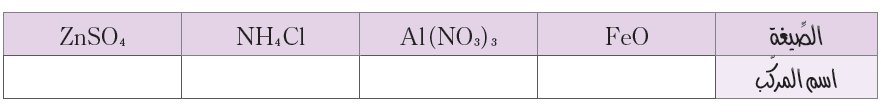 ابحث عن الاسم العلمي لكلّ من المركبات الآتية، ثم اكتب الصيغة الكيميائية لكلّ منها: