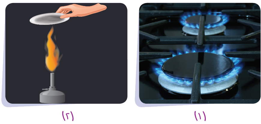 ميّز عملية الاحتراق في الشكلين الآتيين، وعلل تشكل الطبقة السوداء كما في الشكل (2):