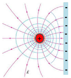 أستنتج: يمثل الشكل خطوط المجال الكهربائي بين شحنة نقطية وصفيحة مشحونة، أرسم سطوح تساوي الجهد الكهربائي.