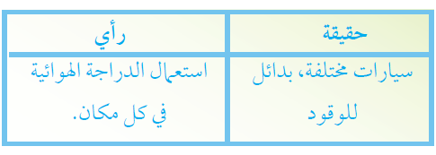 حقيقة أم رأي. أضع حلاً لتناقص احتياط النفط بسبب استعماله المتزايد بوصفه وقوداً للسيارات.