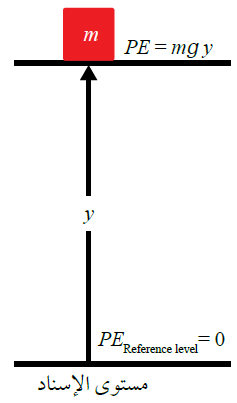 يكون مقدار طاقة الوضع الناشئة عن الجاذبية سالباً؛ لأن موقع الجسم أسفل موقع الإسناد، فتكون y سالبة.