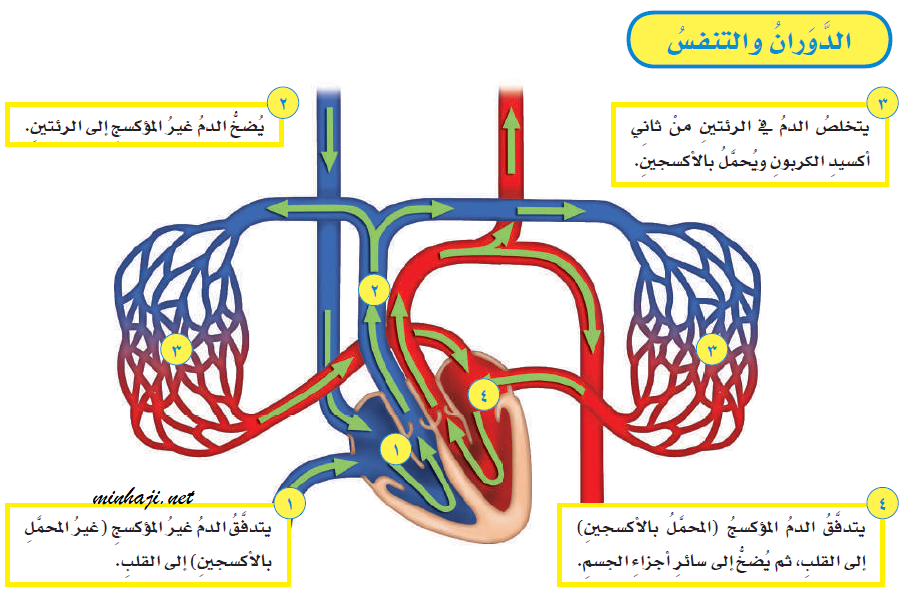 الدوران: حركة مواد مهمة مثل الأكسجين والجلوكوز والفضلات داخل الجسم وخلاله.