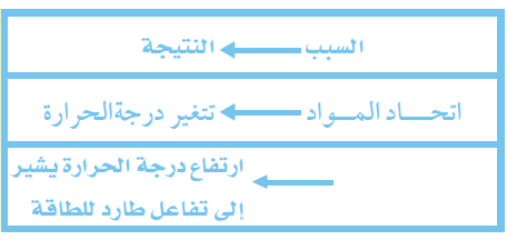 السبب والنتيجة. عندما اتّحدت مادتان معاً ارتفعت درجة الحرارة بمقدار ههس. ما الذي سبّب هذا الارتفاع؟