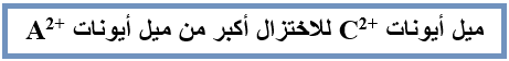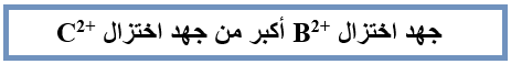العنصر A يختزل أيونات B+2 ولا يختزل أيونات C+2، إن ترتيب العناصر وفق قوتها كعوامل مختزلة هو: