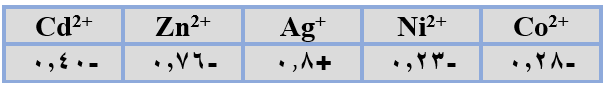 أي الأقطاب الفلزية من جدول جهود الاختزال أدناه يمكن استخدامه بدلاً من القطب (X) لتكتمل الخلية الغلفانية.