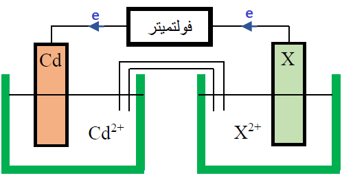 الشكل أدناه يمثل خلية غلفانية قطباها من الكادميوم والقطب (X).