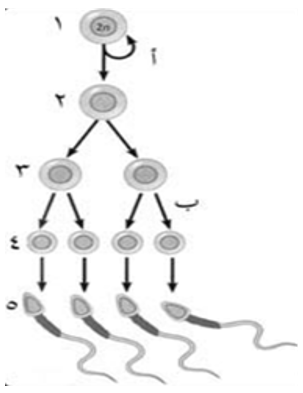 يمثل الشكل أدناه مراحل تكوين الحيوانات المنوية عند الإنسان:
